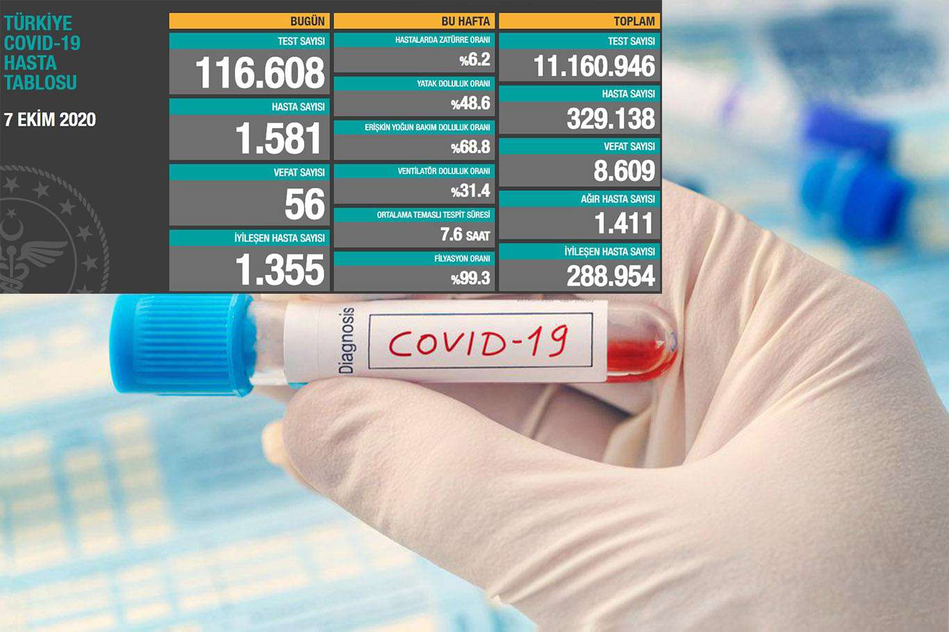 Türkiye'nin 7 Ekim Coronavirus (Covid-19) istatistiğini açıklayan Sağlık Bakanı Fahrettin Koca, son 24 saatte vatandaşı 56 vatandaşın hayatını kaybettiğini, 1581 yeni vakanın tespit edildiğini açıkladı.