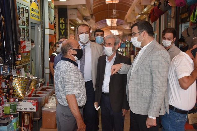 İlçenin Cumhuriyet caddesi, kasap pazarı, kale boğazı ve Kemaliye caddelerinde esnafları tek tek ziyaret ederek sohbet eden ilçe Kaymakamı Mustafa Çiftçiler ve Belediye Başkanı Şeyhmus Aydın vatandaşların kurallara riayet etmesi, maske, mesafe ve hijyen kuralların uymaları konusunda uyarılarda bulundu.