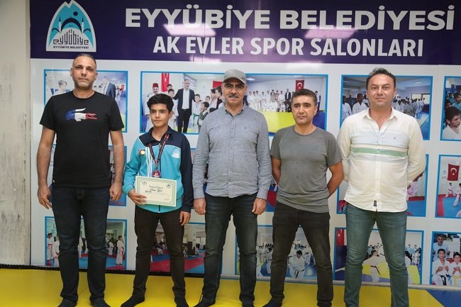 Eyyübiye Belediyesi Gençlik Spor Müdürlüğü bünyesindeki salonlarda hem milli ve mani değerlere haiz birer gençlik olarak yetişen hem de sportif faaliyetlere katılan gençler, turnuvalardaki başarılarıyla adından söz ettirmeye devam ediyor. Son olarak Denizli ilinde 5-8 Ağustos tarihleri arasında düzenlenen 7. Dekai-do Uluslararası Karate şampiyonasında ilimizi temsil eden Savaş Öğüş 55 kğ’da 1.nci, Selahaddin sürmeli 52 kğ’da 2.nci ve Abdulgani Mahir de 70 kğ’da 2.nci olup, takım halinde 3. Oldular. Sporculardan Savaş Öğüş, antrenör Ahmet Küçük ve Gençlik Spor Müdürü T. Turan Öztekin’le bir araya gelen Eyyübiye Belediye Başkanı Mehmet Kuş, Savaş Öğüş’ü hem tebrik etti hem de ödülünü verdi. şampiyonada dereceye giren diğer sporcuların ödüllerini de antrenörlerine takdim eden Başkan Kuş, Eyyübiye gençliğiyle gurur duyduklarını belirtti.