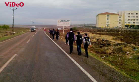Şanlıurfanın Siverek ilçesinde kaldırımı olmayan okul yolunda öğrenciler işlek ve dar olan Karayolunda yürüyerek okula gidiyorlar.