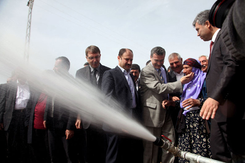 Bidonlarla Su Taşıyan 17 köy suya kavuştu` Açılışı yapılan içme suyu şebekesi ile ilgili yapılan çalışmalara da değinen Vali Güvenç, "Daha önce bu köylerde 41 köyde sondaj yaptıklarını belirterek, "Su yok demişler biz geldik, planladık. Şu ana kadar önümdeki liste sizin köyünüz de dâhil olmak üzere 17 köyde suyu bulduk. Bize inanın Allah`ın izniyle geriye kalanın tamamının suyunu bulacağız. Çünkü Başbakanımızın bize emri ve politikası `ayrım yapmadan köylerin su ve yol problemini çözün` gücümüzün oranına göre nüfusa göre yakınlığa uzaklığa göre planlama yapıyoruz. İnşallah bu köyün de yolunu yapacağız. İçme suyu bu ve diğer 16 köye hayırlı olsun" dedi.