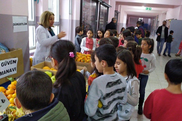 Şanlıurfa’nın Siverek ilçesindeki Mehmetçik İlkokulu öğrencileri, okul içerisinde kurulan ve tezgâhtarı olmayan “Güven Manavı”ndan meyve alıp, parasını kumbaraya atarak doğruluğu ve dürüstlüğü öğreniyorlar.
