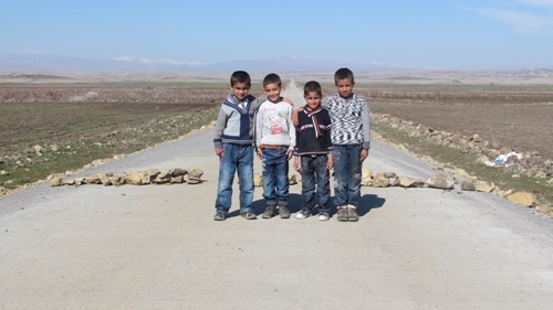 Şanlıurfa’nın Siverek ilçesine bağlı Sislice (Buxçik) Köyü’nde düğüne gelen araçlardan bahşiş almak isteyen çocuklar yolları taş ile kapatıyor.