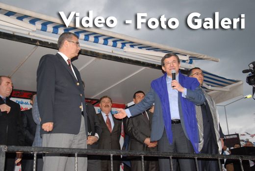 Miting alanında gelişte büyük bir coşku ile karşılanan Dış işleri Bakanı Prof Dr. Ahmet Davutoğlu partilileri dört dilde selamladı.