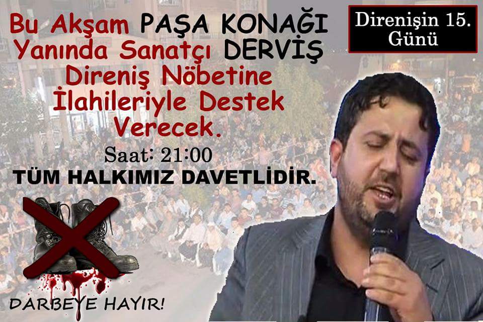 Direniş Nöbetinin 15. gününde Özlem Ajans Sanatçısı Derviş Madsor İlçe Emniyet Müdürlüğü önünde, saat 20.30'da ilahi konseri verecek. Programa tüm Siverek halkı davet edildi.