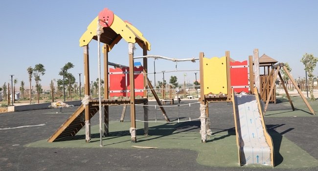 İçerisine sosyal donatılar, aletli açık spor alanları, bisiklet parkuru, yürüme yolları, kamelyalar, piknik yerleri gibi çok sayıda ayrıntının bulunduğu Eyyübiye Millet Bahçesi tamamlandığında hem Eyyübiye’nin hem de bölgenin en büyük yeşil alanlarından biri olacak.