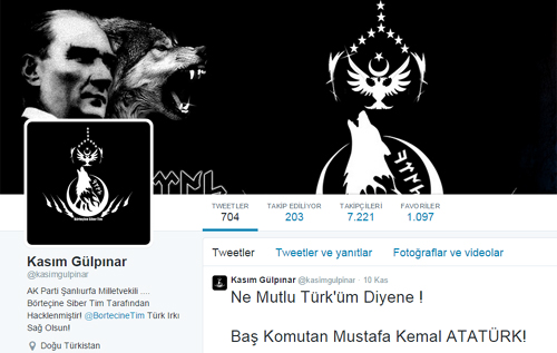 Şanlıurfa Ak Parti Milletvekili M.Kasım Gülpınar'ın 7221 takipçisi olan resmi twitter adresi aşırı sağcı gruplar tarafından 10 Kasım 2014 tarihinde hacklendi. Gülpınar'ın şifrelerini ele geçiren hackerlar Gülpınar'ın ismi ile paylaşımlarda bulundu. Hackerler hesabın ele geçirilmesi ile ilgili "Ak Parti Sanliurfa Milletvekili Kasim Gulpinar Turk Irki Adina Hacklenmistir.Turk Irki Sag Olsun!" paylaşımında bulundu.