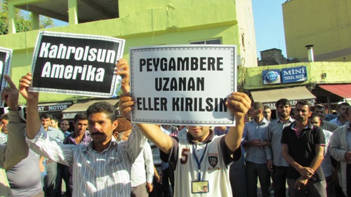 Amerika dışişleri bakanı bayan, filmin yayınlanmasına neden engel olmuyorsunuz sorusuna; ‘Biz fikir özgürlüğünü engelleyemeyiz!’ diyor. Ona göre İslam’ın aziz Peygamberine en iğrenç saldırılarda bulunmak, iki milyar Müslüman’ın kutsallarını aşağılamak, Kur’an’la alay etmek, Efendimizin temiz eşlerine haşa fahişe demek, Kainatın efendisini pornocu ilan etmek fikir özgürlüğü…
