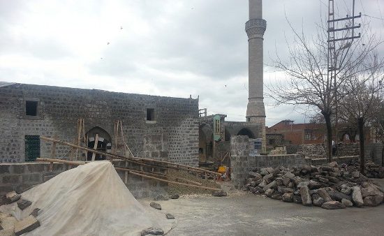 Şanlıurfa'nın Siverek ilçesinde Hasan Çelebi Mahallesi'nde bulunan Hacı Ömer Camiisinde restorasyon çalışmaları devam ediyor