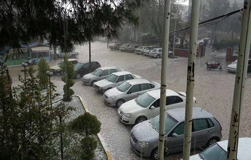 ŞANLIURFA Zaman zaman yağmurun etkili olduğu Mart ayında, Hilvan ilçesinde etkili olan dolu yağışı ilçeyi beyaza bürüdü.