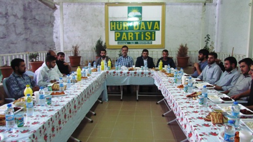 Hüda-Par Siverek Gençlik Kolları Hasan Çelebi Mahallesinde bulunan parti binasında düzenlemiş olduğu iftar yemeği ile gençlerle bir araya geldi. İftar programına Hüda-Par Şanlıurfa Gençlik Kolları İl Başkanı Cumali Taba, Hüda-Par Siverek Gençlik Kolları İlçe Başkanı Şeyhmus Bozkurt ve partili gençler katıldı.