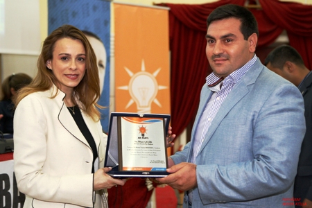 Sanlıurfa'da yapılan Şanlıurfa Ak Parti IV. Olağan Kongresinde, Şanlıurfa İl Başkanlığı tarafından, göstermiş olduğu üstün gayret ve çabadan dolayı başbakanında teşekkürüne mazhar olan Siverek Ak Parti ilçe Başkanı İlhan Çelike plaket verildi. Siverek Ak Parti İlçe Başkanı ilhan çelik plaketini Şanlıurfa milletvekili Doç. Dr. Zeynep Karahan Uslu'nun elinden aldı.