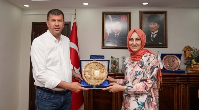 Güncel konuların ele alındığı ziyarette Başkan Çakmak, Başkan Odabaşı’na ilçeye özgü hediyeler verdi.