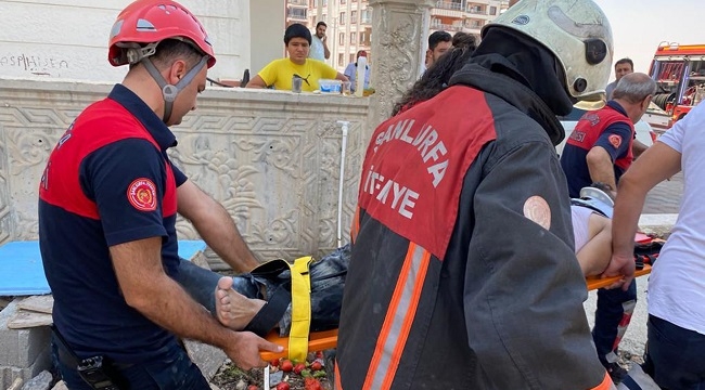 Şanlıurfa'nın Karaköprü ilçesinde inşaatta çalışırken dengesini kaybederek aşağı düşen işçi yaralandı.