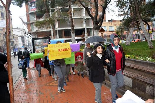 Şanlıurfa’nın Siverek ilçesinde lise öğrencileri Mersin'de katledilen Özgecan Aslan için yağmur altında sloganlar atarak yürüdü.