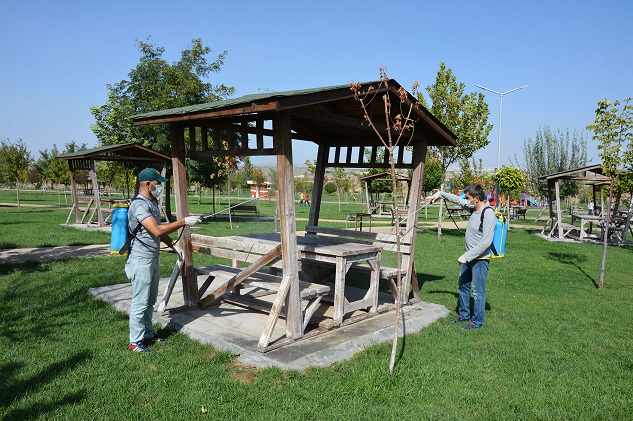 Vatandaşların hafta sonu dinlenmek amacıyla Millet Bahçesini kullandığının belirtildiği açıklamada, “Halk sağlığının korunması amacıyla hafta içi devam eden denetimler, hafta sonu olması münasebetiyle vatandaşların yoğun olarak kullandığı piknik alanlarında da sürdürülmektedir. Sahada aktif olarak çalışma yürüten birimlerimizce koronavirüs bulaşımının minimum düzeye indirilmesi amacıyla Millet Bahçesinde geniş kapsamlı çalışma yapılmıştır. Zabıta ekiplerimizce vatandaşlarımız uyarılarak koronavirüs tehlikesinin devam ettiği anlatılmış olup alınan tedbirlerin uygulanması istenmiştir. Ekiplerimizin eş zamanlı yürüttüğü çalışmalar kapsamında ortak kullanım alanları dezenfekte edilmiş olup tazyikli suyla temizlenerek halkımızın hizmetine sunulmuştur.” denildi.