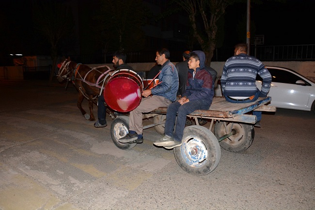 Şanlıurfa'nın Siverek ilçesinde Ramazan ayının başlamasıyla birlikte davulcular sahurda "At arabalı" hizmet veriyor.