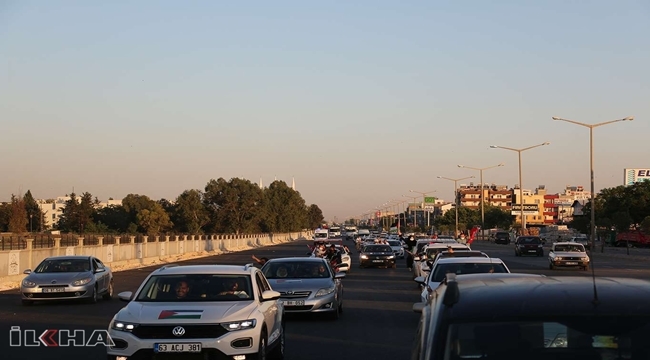 Basın açıklamasının ardından önceden belirlenen güzergâhta yüzlerce aracın katıldığı konvoy düzenlendi. Konvoyda Filistin ve Tevhid bayrakları açıldı.