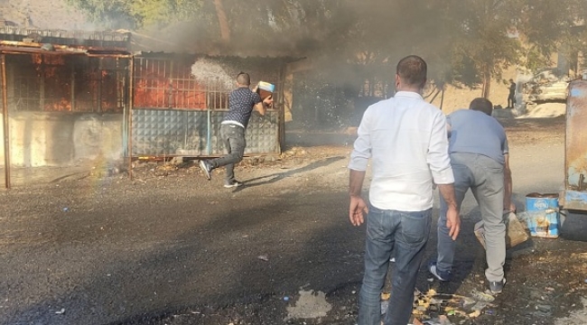 Barakadan dumanlar yükseldiğini gören çevredekiler, yangını hortumla ve kova ile taşıdıkları suyla söndürmeye çalıştı.