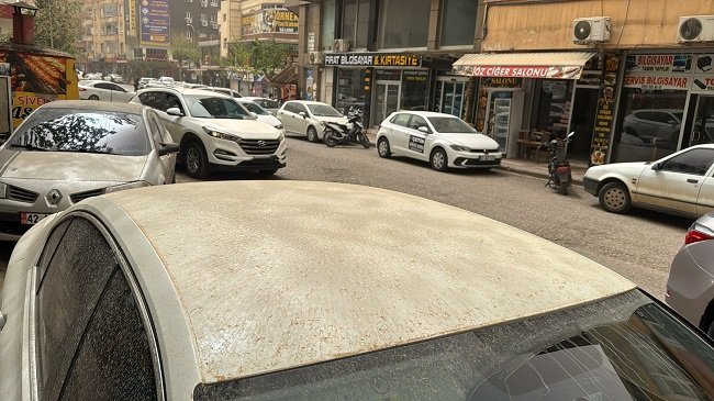Toz taşınımı nedeniyle trafikte görüş mesafesi azalırken, park halindeki araçların üzeri kısa sürede tozla kaplandı. Vatandaşlar araçlarını temizlemekle uğraşırken, havadaki yoğun partiküller solunum güçlüğü ve çeşitli sağlık sorunlarına davetiye çıkarıyor.