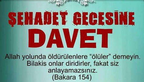 Şanlıurfa'nın Siverek ilçesinde faaliyet gösteren Siverek İkra Sosyal Yardımlaşma ve Dayanışma Derneği (İKRA-DER) tarafından İslam şehitlerini anmak amacıyla " Şehadet Gecesi" isimli program düzenlenecek. Konuşmacı olarak Doğru Haber Gazetesi Genel Yayın Yönetmeni Mehmet Göktaş'ın katılacağı programa ilahi sanatçı Bilal Güler katılacak. 16.02.2017 perşembe günü Gümüştaş Düğün Salonunda düzenlenecek program saat 19.30'da başlayacak.