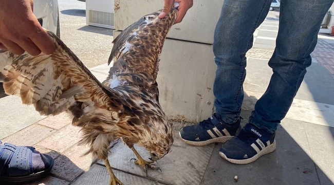 Veteriner tarafından muayene edilen şahinin, yaralandığı ve bitkin düştüğü belirlendi.