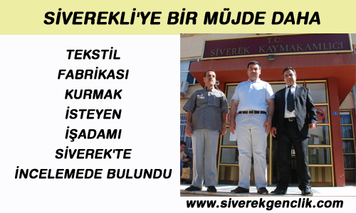 Siverek'te tekstil üzerine yatırım yapmak için gelen iş adamı Turan Bakırcı ve Ak Parti ilçe başkanı İlhan Çelik ile birlikte İlçe Kaymakamı Mahmut Hersanlıoğlunu makamında ziyaret etti.