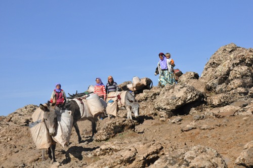 İlçeye bağlı Kartal köyünde yaşayan köylü kadınlar günlük su ihtiyacını karşılamak için köyün en üst noktasında bulunan insan gücüyle açılan kuyudan su çekip yaklaşık 3 Km yol katederek sırtlarında kovaları taşıyıp evlerine su taşıyorlar.