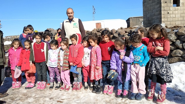Umut Kervanı Siverek Yetkililerinden Kutbeddin Temur, İzmir’de yaşayan bir hayırseverin aracılığı ile Akyurt kırsal mahallesindeki öğrencilere ulaştıklarını belirterek, “ Öğrencilerimiz Karacadağ’ın eteklerinde yaşıyor. Dondurucu soğukların yaşandığı köyde öğrencilerimizin ayaklarında doğru dürüst ayakkabıları yoktu. İzmir’den hayırsever bir vatandaşın vesilesiyle köydeki 40 öğrenciye bot yardımında bulunduk.” dedi.