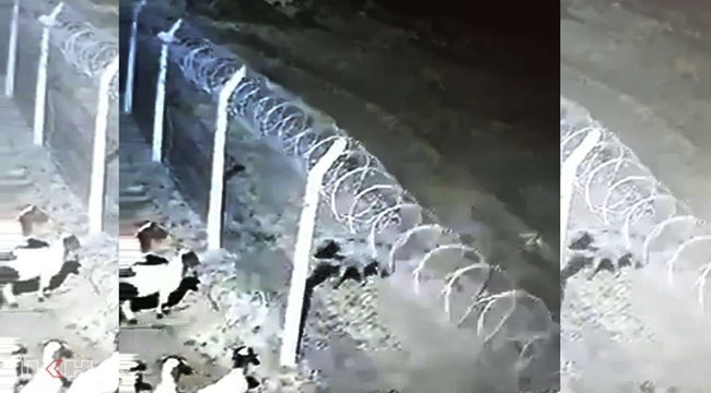 Sırtlanın tel örgüleri geçmeye çalıştığı ve daha sonra alandan ayrıldığı görüntülendi. (İLKHA)