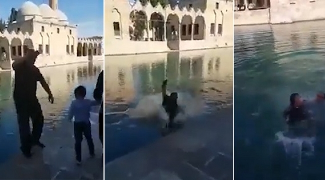 Şanlıurfa'nın tarihi mekânlarından olan Balıklıgöl'de video çeken şahıs, arka arka giderken dengesini kaybederek göle düştü.